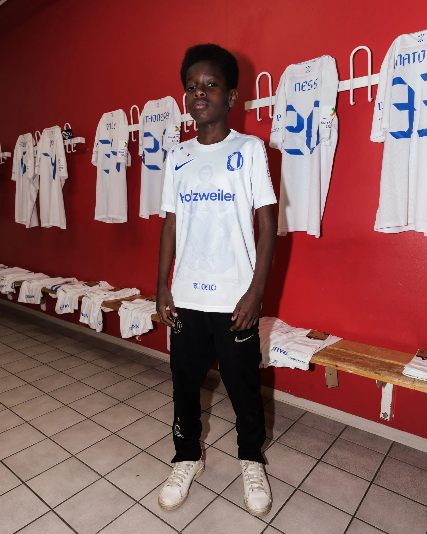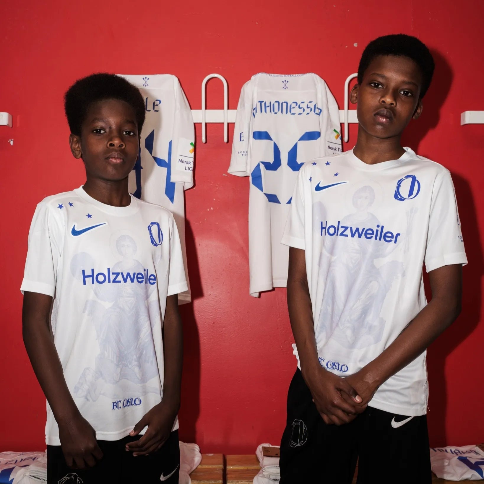 Inspired by the white Norwegian marble adorning the main hall, as well as Alf Rolfsens fresco, St. Hallvard - Fantasy of The City Coat of Arms, depicting Oslo City patron saint. The four stars on the shoulder are from the citys coat of arms.