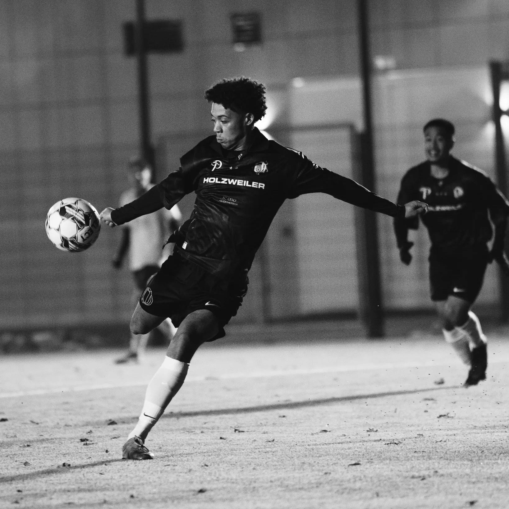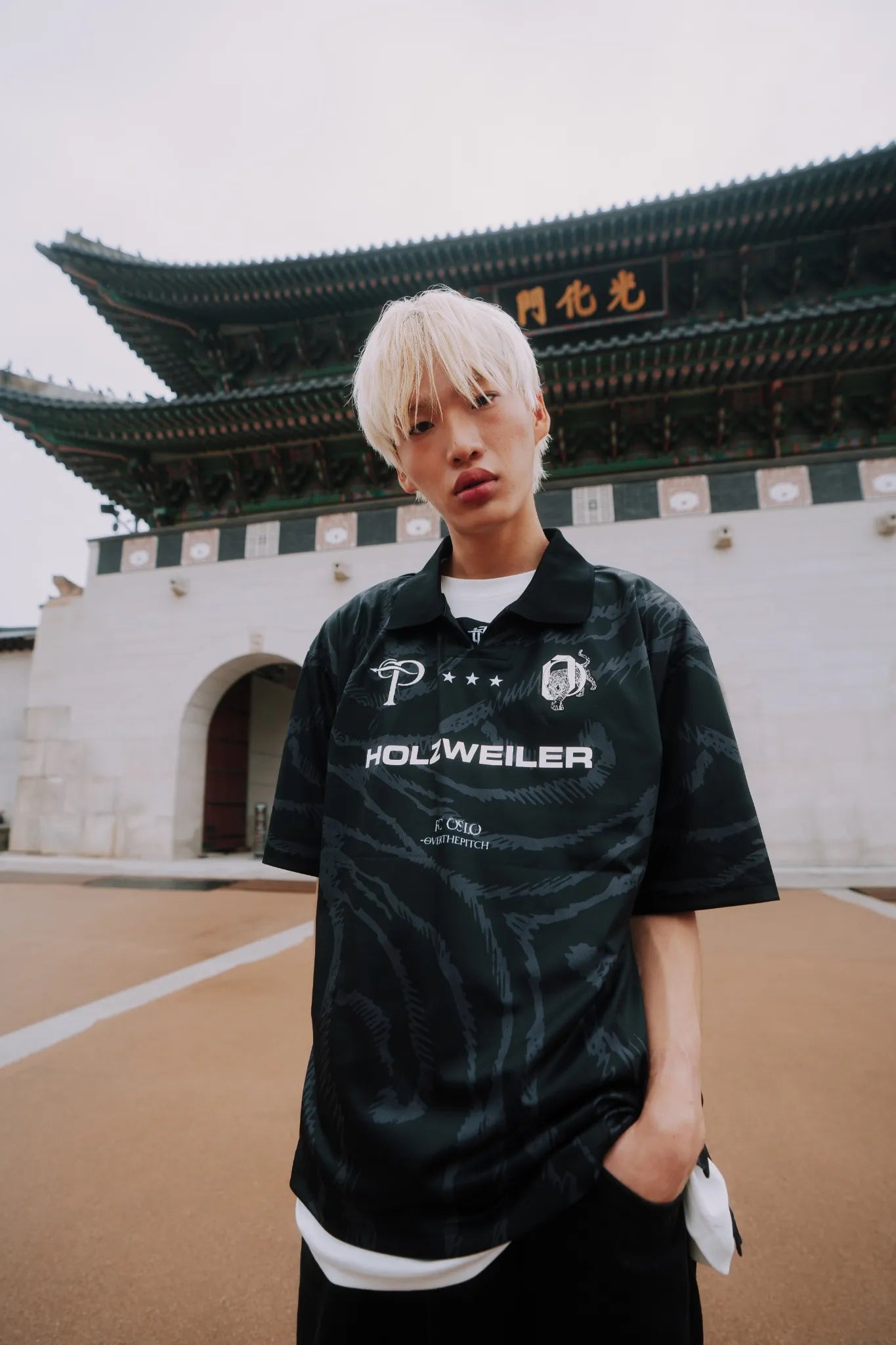The FC Oslo x Over The Pitch home kit features a clean black base with bold tiger stripes, embodying strength and elegance. The sleek design merges classic football style with a fierce animal motif, representing the team's power and unity. Whether on the pitch or worn by fans, this kit delivers a striking, modern look that captures the spirit of FC Oslo.